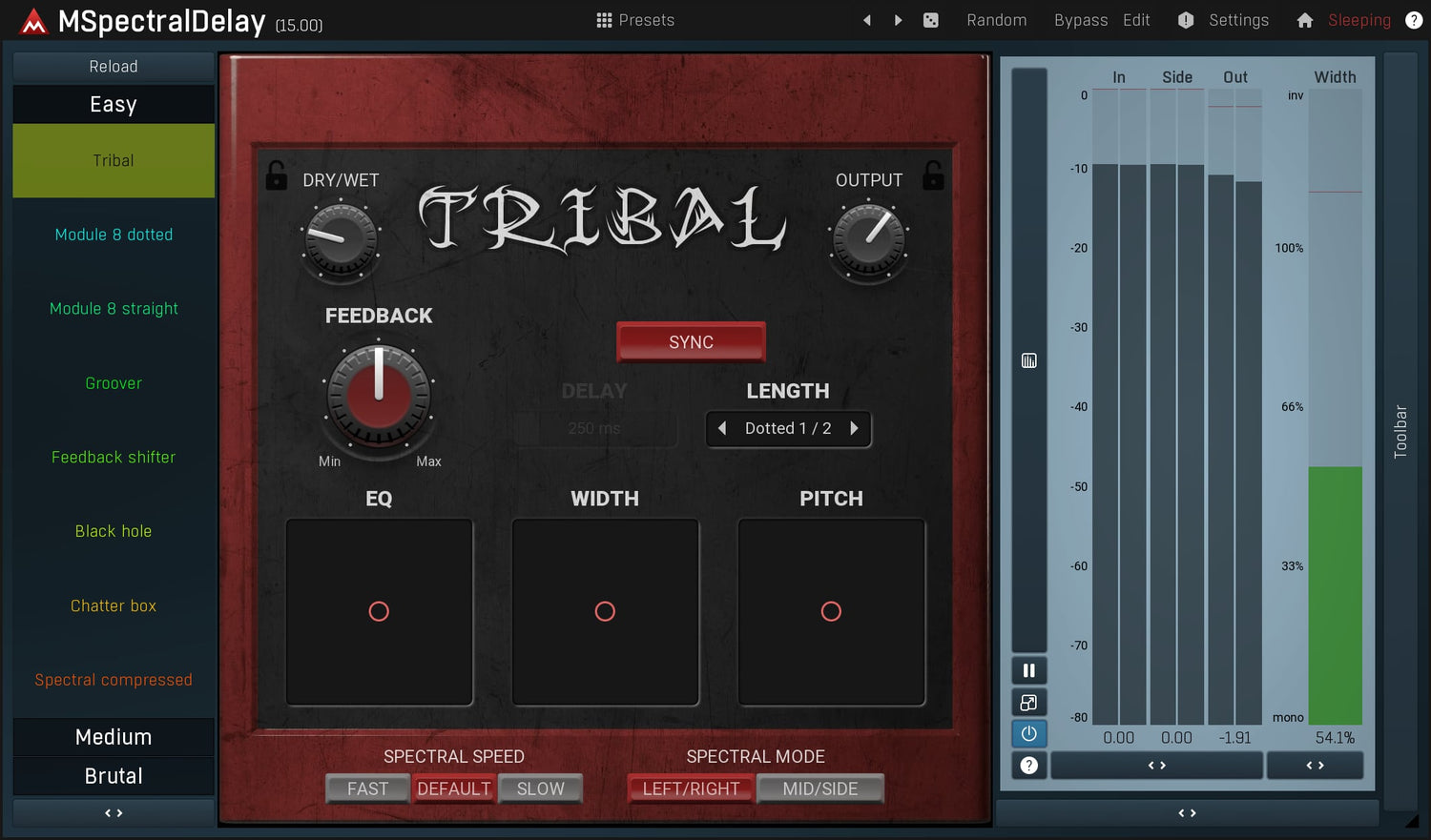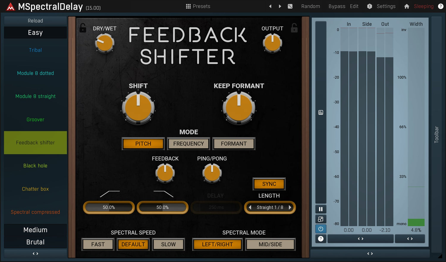MSpectralDelay is a unique creative delay plugin, which works in the spectral domain and lets you perform various transformations on the delayed signal - from changing pitch to arbitrarily transforming individual frequencies. It's complex, but it is still easy-to-use for the beginners.