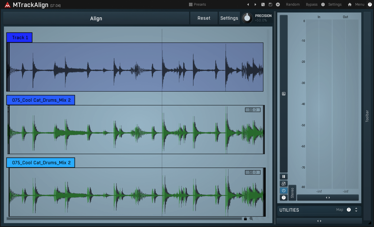 Achieve the tight, professional sound you've always wanted. Whether you're double-tracking guitars, layering synth basses, or tightening up a full rhythm section, MTrackAlign ensures every note hits with perfect precision. Use your tightest guitar or bass take as the guide and instantly lock in all other performances. The result is a rock-solid foundation with unmatched punch and clarity, free from the phasing issues and "flamming" that plague manually edited tracks.