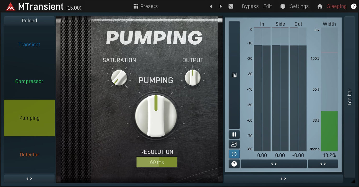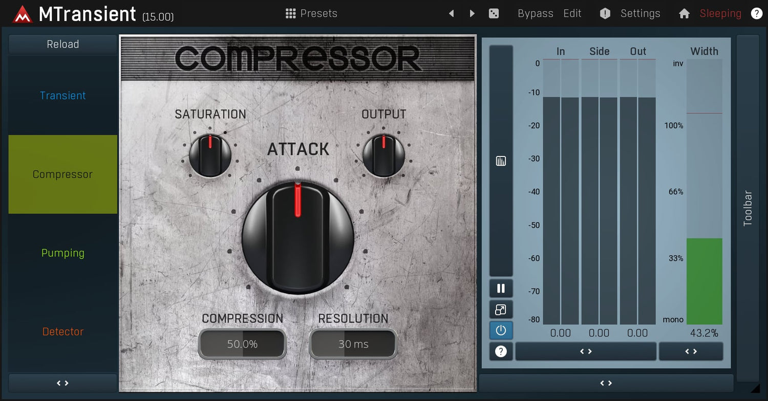 When your drums sound boring and sterile, there's now a cure. Bring some attack and punch to any rhythmic track with MTransient!
