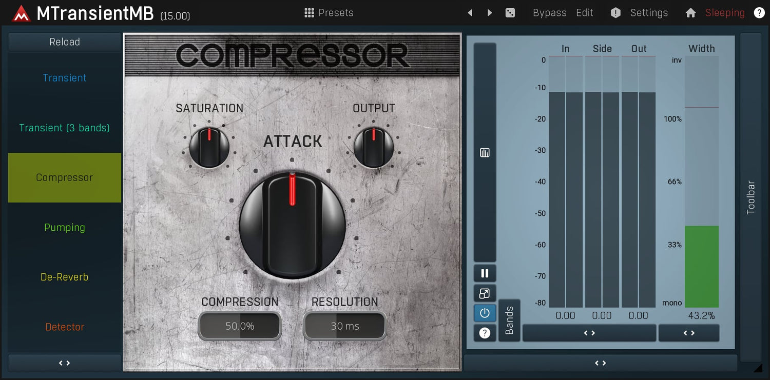 When your drums sound boring and sterile, there's now a cure. Bring some attack to any rhythmic track with MMultiBandTransient!
