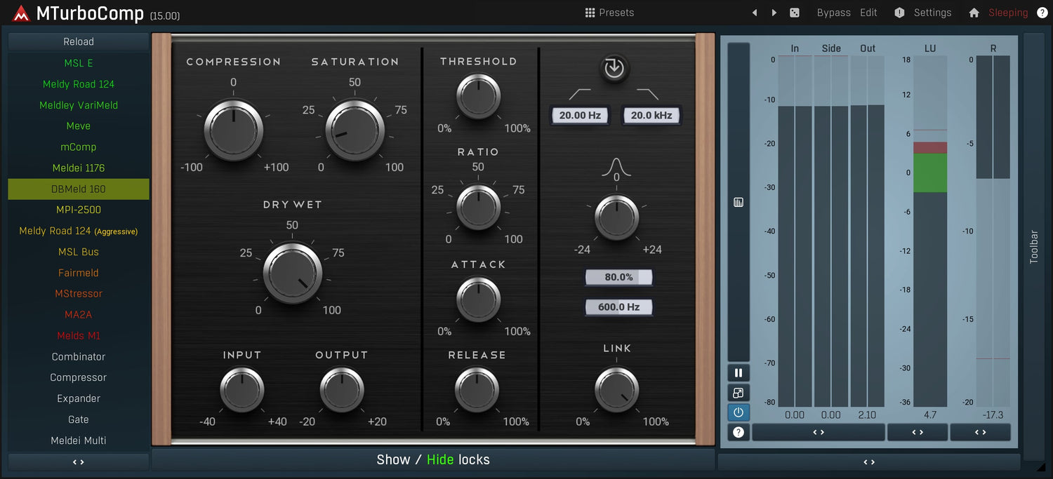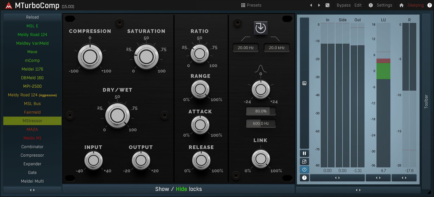 MTurboCompLE is the ultimate (not-only) compressor, which emulates most of the classic vintage analogue compressors. Unbelievable sound, uniquely fast workflow, tons of additional features.
