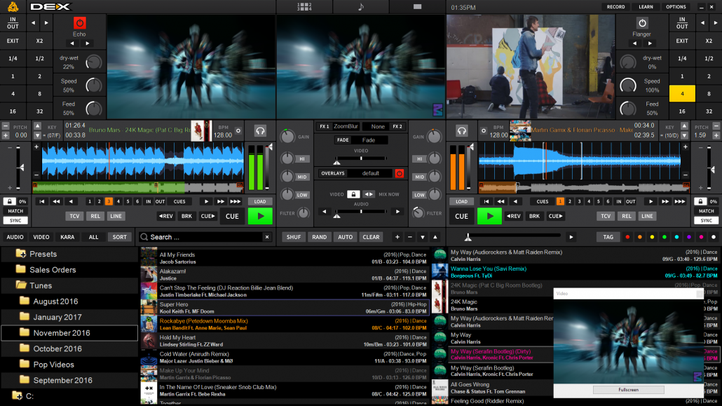 - Up to 4 DJ decks (two for video and karaoke) with professional grade mixer and playlists