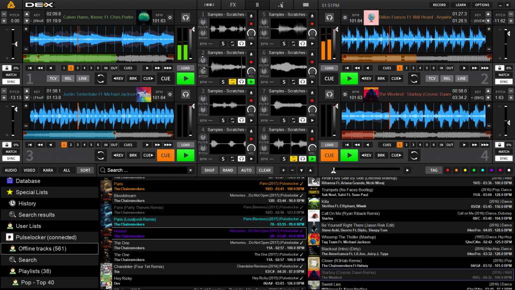 DEX 3 est un logiciel DJ professionnel pour MAC et Windows qui vous permet d'aller bien au-delà du simple DJing. Le logiciel DJ le plus polyvalent disponible, DEX 3 vous permet de mixer de la musique, des vidéos musicales et d'animer des karaokés avec précision. Pourquoi se contenter d'un produit qui n'a qu'une seule fonction ou utiliser plusieurs produits ? DEX 3 est le seul logiciel DJ avec toutes les fonctionnalités dont vous avez besoin pour faire de chaque événement un succès total. Avec notre mélange automatique basé sur une grille de rythme et la détection de tonalité, il est facile de mélanger des morceaux, vous permettant de vous concentrer sur les autres aspects de votre mix. Votre public appréciera une qualité sonore supérieure rendue possible par le moteur sonore personnalisé de DEX 3, que vous mixiez en direct ou que vous utilisiez l'automix. Puisque DEX 3 offre une lecture sans latence et un support pour les contrôleurs DJ les plus populaires d'aujourd'hui ; les boucles, les points chauds et toutes les fonctionnalités de lecture sont ultra-réactives. DEX 3 vous permet de créer des mixes à partir de votre propre bibliothèque de musique et de vidéos musicales et/ou d'iTunes en utilisant simplement un clavier ou une souris, ou l'un des 100+ contrôleurs DJ pris en charge. Téléchargez DEX 3 aujourd'hui et laissez libre cours à votre imagination – DEX 3 est la solution totale de logiciel de mixage DJ. Maintenant avec le support de streaming TIDAL !