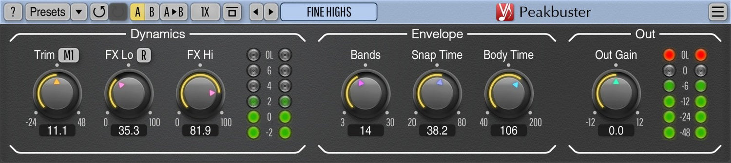 Peakbuster est un plug-in d’effet d’amélioration des transitoires multibande, qui s’appuie sur un algorithme automatique avancé.