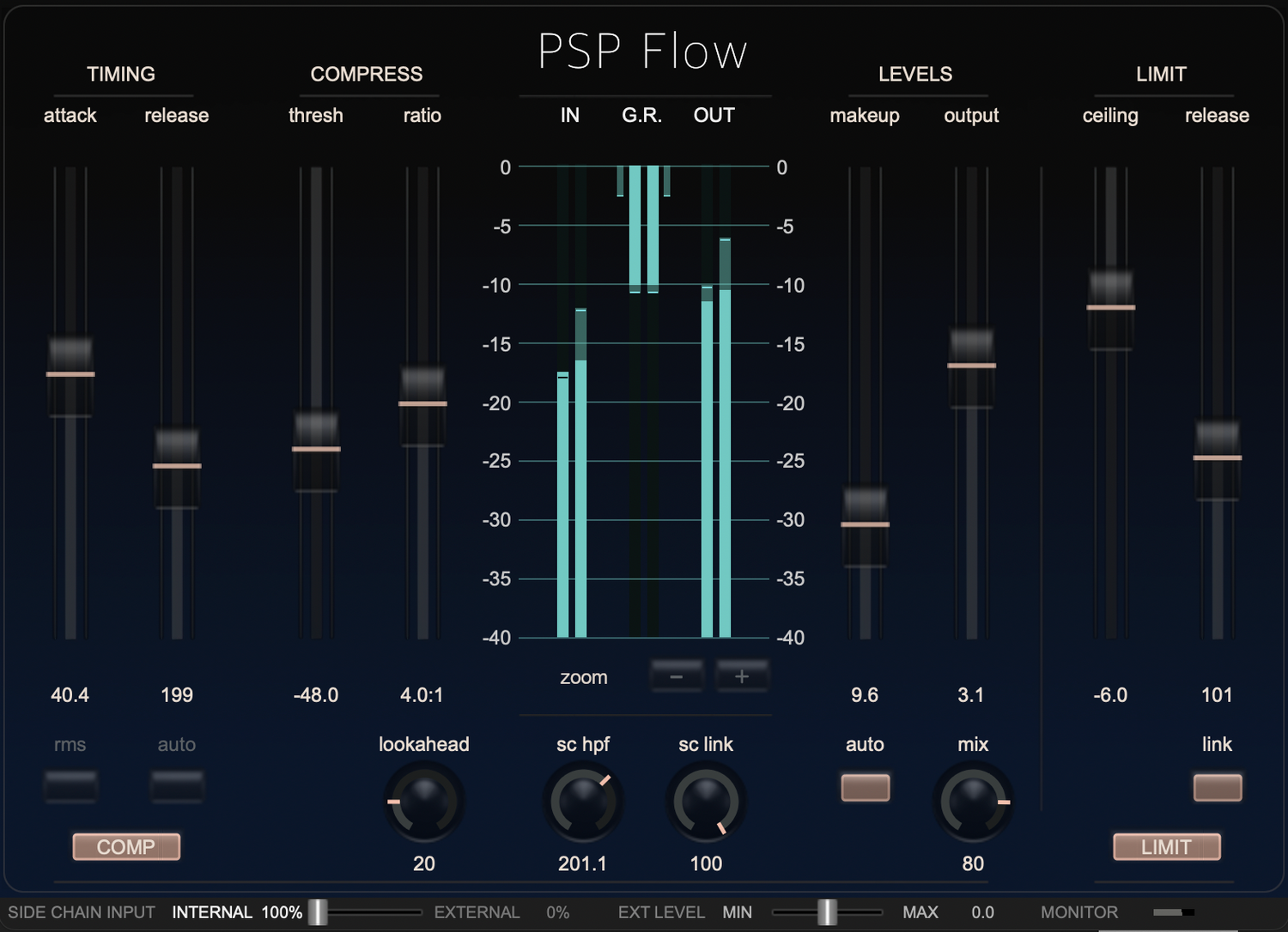 PSP Flare est un outil conçu pour une compression fluide et musicale à travers une variété de pistes et de groupes. L'algorithme de base et l'inspiration pour le compresseur ont été fournis par Paolo Pasquariello, un ingénieur du son de post-production italien talentueux et doué. Bien qu'il ait été spécifiquement conçu pour le cinéma et la post-production TV/vidéo, son comportement unique peut offrir d'excellents résultats dans presque toutes les applications.