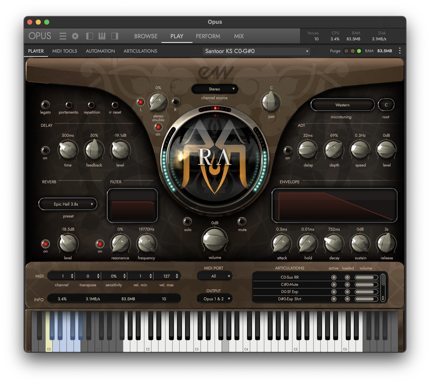 EastWest/Quantum Leap RA offre aux compositeurs un accès à une variété d'instruments rares et uniques provenant d'Afrique, d'Europe, d'Inde, des Amériques, d'Australie, de l'Extrême-Orient et des empires du Moyen-Orient et turc. Les musiciens découvriront que RA a une qualité sonore incroyable et ils s'émerveilleront de l'articulation de chaque instrument qui a une large gamme allant de contrôlée à expressive. Tous les instruments et ensembles présentés dans la collection ont été échantillonnés de manière extensive afin de préserver le véritable caractère et l'expression de chaque instrument. Pour la première fois, les utilisateurs auront plus de contrôle sur les sons offerts dans la collection, ainsi que la capacité de charger encore plus d'instruments que jamais auparavant.