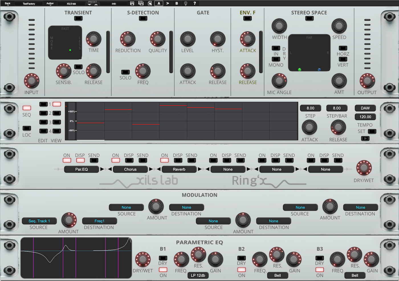 RingX comes equiped with accurate input followers, both step and locator based sequencers and a true stereo dynamic engine.