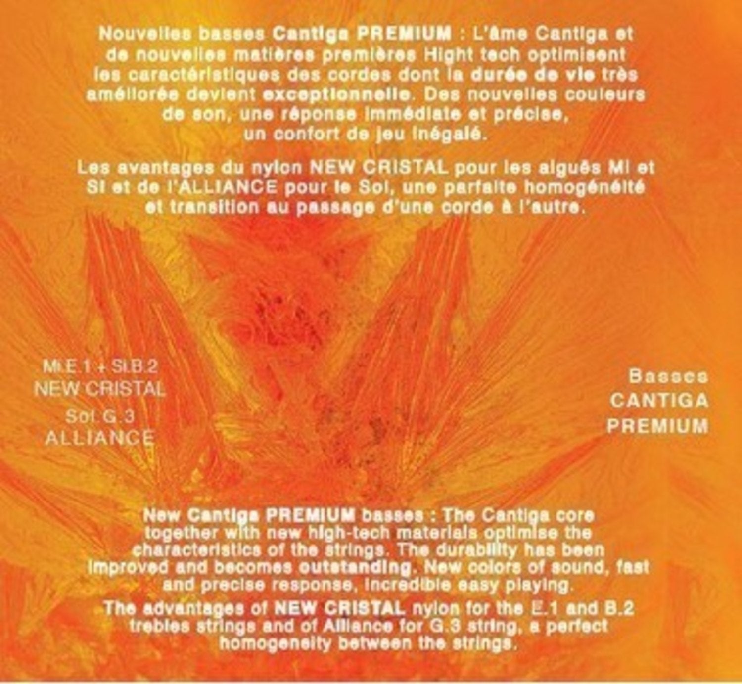 - Treble strings e1 and h/b2 clear nylon, g3 ALLIANCE CARBON. CANTIGA PREMIUM Bass strings