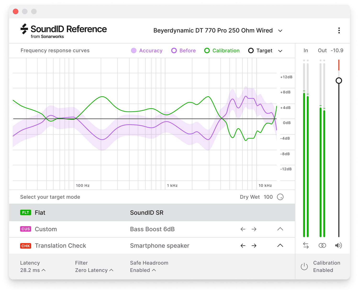 - Custom target: target curve adjustments in real time