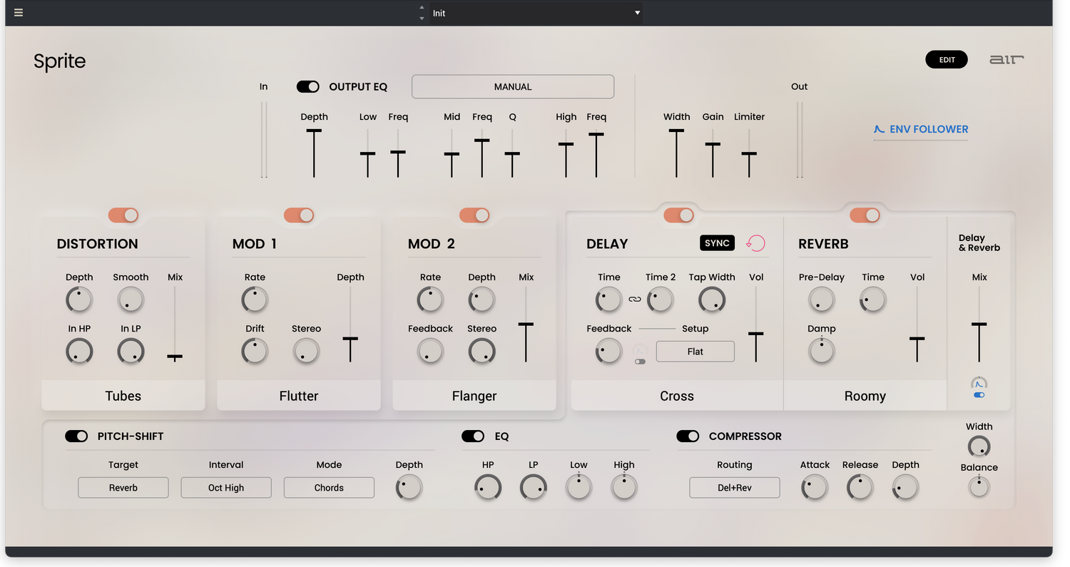 Air Sprite, a modern take on the studio hardware staple of the 80s and 90s, the multi-effects processor. Sprite does things not possible in a hardware unit.
