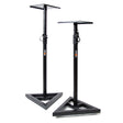 Højden kan justeres fra 66 til 116 cm, hvilket gør det nemt at tilpasse monitorernes position til din lytteposition. Et sikkerhedssystem med låsepin forhindrer, at stativet utilsigtet sænkes under brug. Den robuste konstruktion i pulverlakeret stål sikrer høj stabilitet og en maksimal belastning på op til 15 kg pr. stativ.