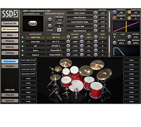 L'interface graphique mise à jour dans SSD 5.5 rend la personnalisation de vos batteries plus facile que jamais. Vous avez un contrôle total sur la dynamique, les options de panoramique et les réglages ADSR de chaque instrument. Mélangez sans effort des micros d'ambiance et des micros proches avec des options de routage personnalisées. Avons-nous mentionné que vous pouvez même changer la taille du plugin ?