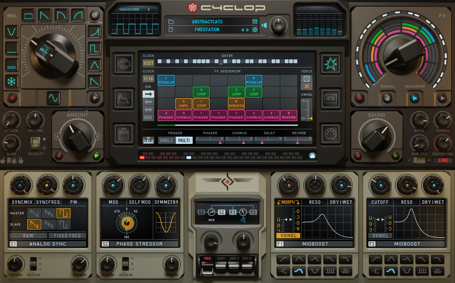 Monophonique, brut et incroyablement polyvalent. Cyclop est rempli d'outils pour la basse du futur et au-delà. Wobble Knob, FX Sequencer et un moteur sonore hilarant et polyvalent vous apporteront une joie sans fin.