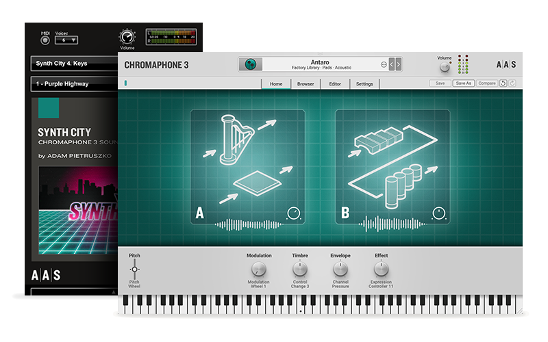 Resident sound designer Adam Pietruszko embraces retro-futurism with Synth City — a collection of 100 presets amalgamating the nostalgia of the 1980s’ vibe with Chromaphone’s modern twist.