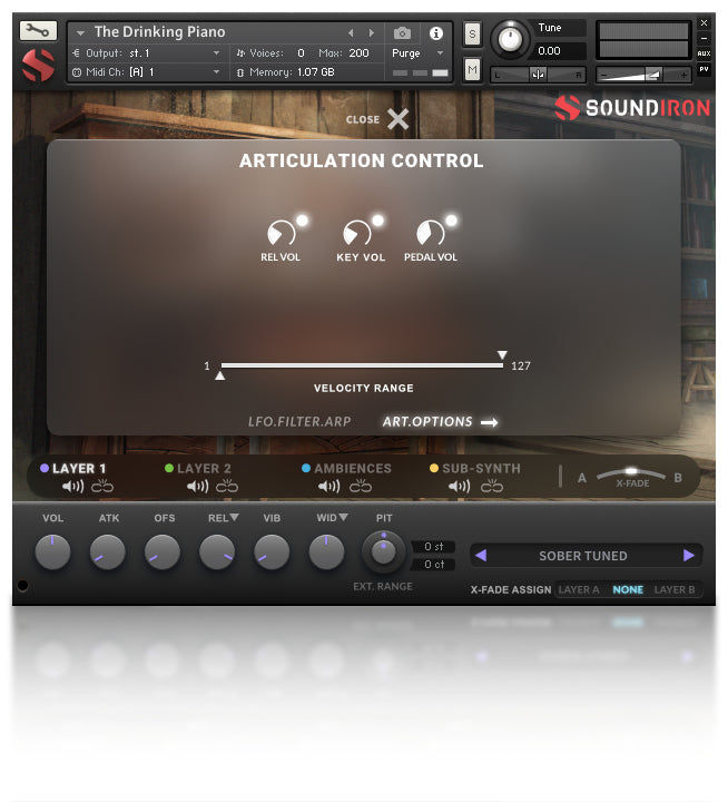- Tuned & Untuned Piano in Sober and Drunk modes, Bench creaks, Plucks, Pedal noises, Releases, SFX