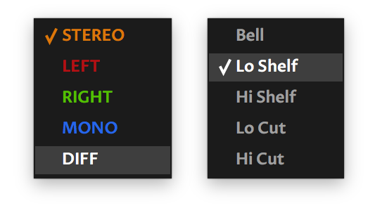 - 5 freely assignable Panorama modes; stereo, mono (sum), L-R (difference), left–only and right–only