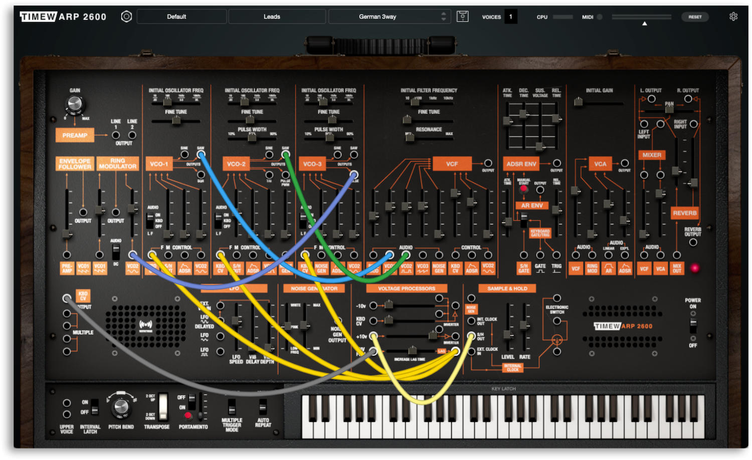 The TimewARP 2600 transcends mere replication. With latest generation digital modeling and expanded capabilities like eight-voice polyphony and patch memory, it sets a new standard in synthesizer design. This instrument embodies the spirit of the ARP 2600 while pushing the boundaries of what a modern synthesizer can achieve.