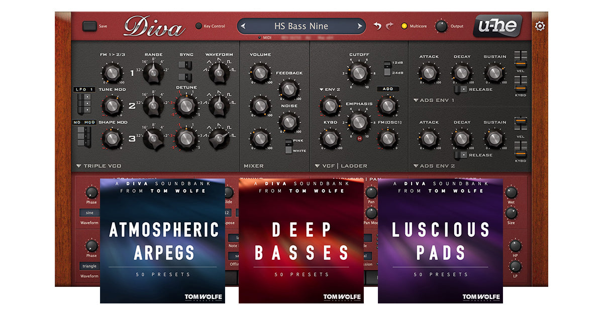 Step into a world of rich, analogue sound with the u-he Diva Tom Wolfe Bundle. Diva captures the essence of five decades of legendary monophonic and polyphonic synthesizers through meticulously modeled oscillators, filters, and envelopes—offering a level of authenticity that sets it apart from other virtual instruments. Powered by real-time circuit simulation and Zero Delay Feedback (ZDF) filter design, Diva delivers unmatched warmth, depth, and resonance for a truly vintage experience.