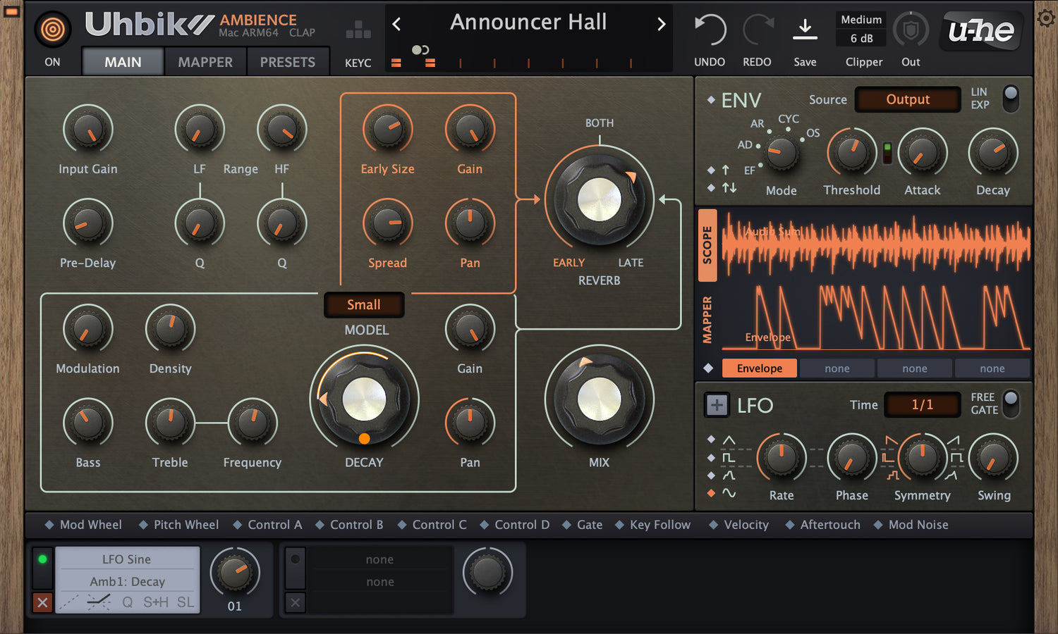 - Uhbik Ambience (Reverb) – Des pièces intimes aux vastes atmosphères de l'espace, mélange les réflexions précoces avec des algorithmes de plaque polyvalents.