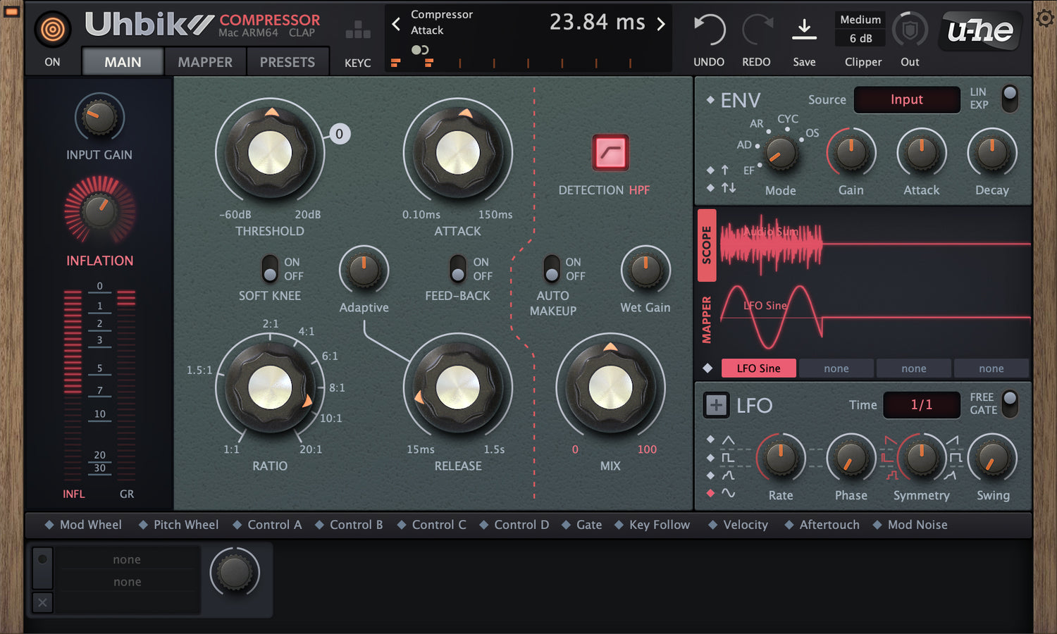 - Uhbik Compressor – Ajoute du punch, du polissage et de la clarté avec un relâchement adaptatif et une compression ascendante unique (“inflation”).
