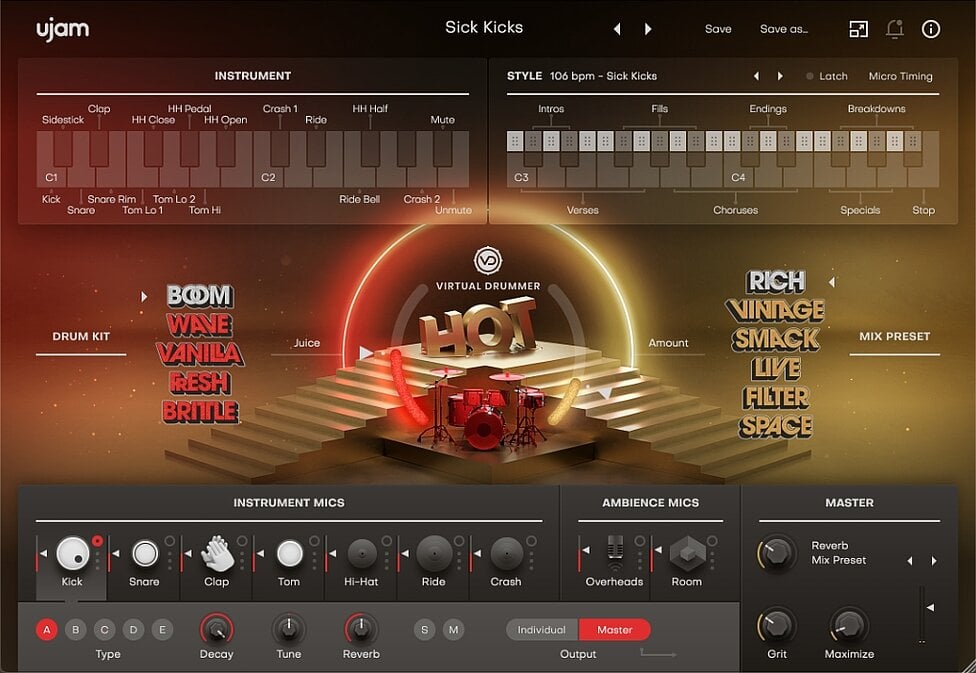 Virtual Drummer HOT fournit de véritables performances de batterie avec un traitement percutant semblable à celui des machines à batterie pour remplacer votre bibliothèque d'échantillons par des grooves de batterie plus vivants et énergisants.