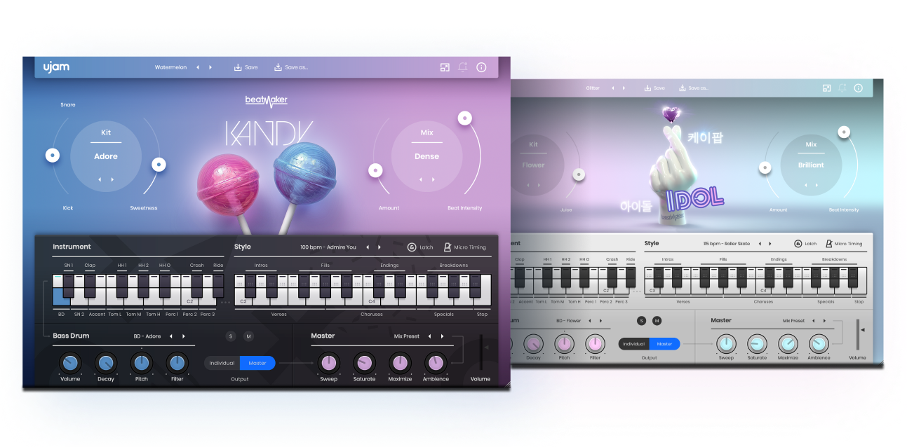 Donnez vie à vos morceaux avec le Beatmaker KANDY pour des beats pop brillants et les styles vibrants inspirés de K-Pop et d'EDM du Beatmaker IDOL. Parfait pour des créations qui atteignent les sommets des charts.