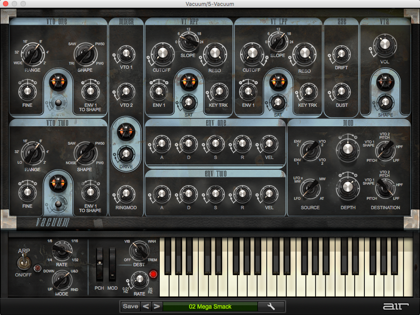 Vacuum tilbyder også et antal modulationsmuligheder, herunder to envelopes, som kan indstilles til at retrigge i indstillingssiden. Der er også en indbygget arpeggiator. For en synth plugin lyder Vacuum overraskende lidt som en synth plugin, idet den udviser en ægte, beskidt og analog kvalitet. Den stilfulde vintage synth-styled interface hylder nogle af de bedste vintage tube synths fra fortiden, kraftfuld og nem at bruge.