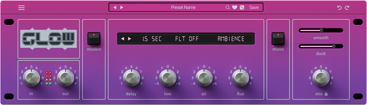 Glow n'est pas juste une recréation — c'est une réimagination de ce que le réverb iconique peut être dans la production musicale moderne. Nommé pour la qualité lumineuse et radieuse qu'il confère aux sons, Glow ajoute dimension, couleur et magie vintage à tout ce qu'il touche. Dès que vous l'activez, vous êtes transporté dans le monde sonore brumeux et saturé de néons du début des années 80 — où le réverb était plus grand que nature et plein d'émotion.