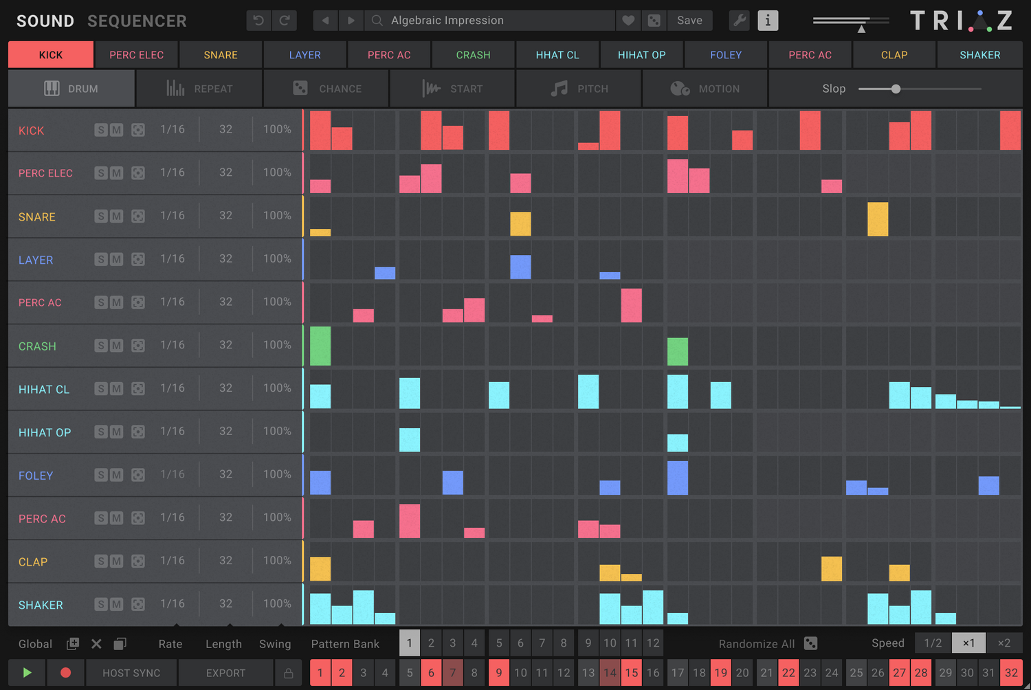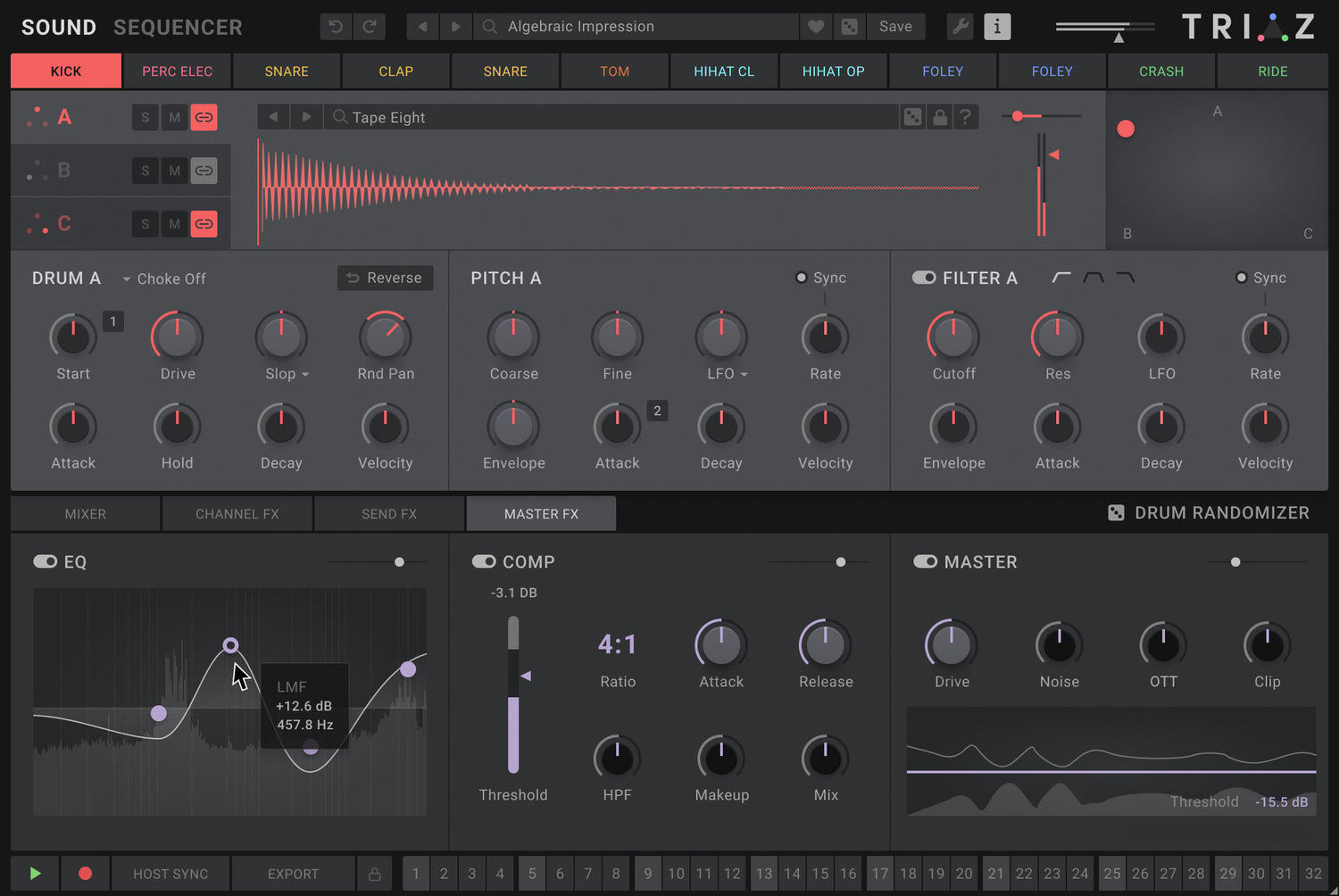 Du punch commercial propre au chaos abstrait et débridé — Triaz vous donne les outils, le son, et la liberté de façonner n'importe quel rythme imaginable.