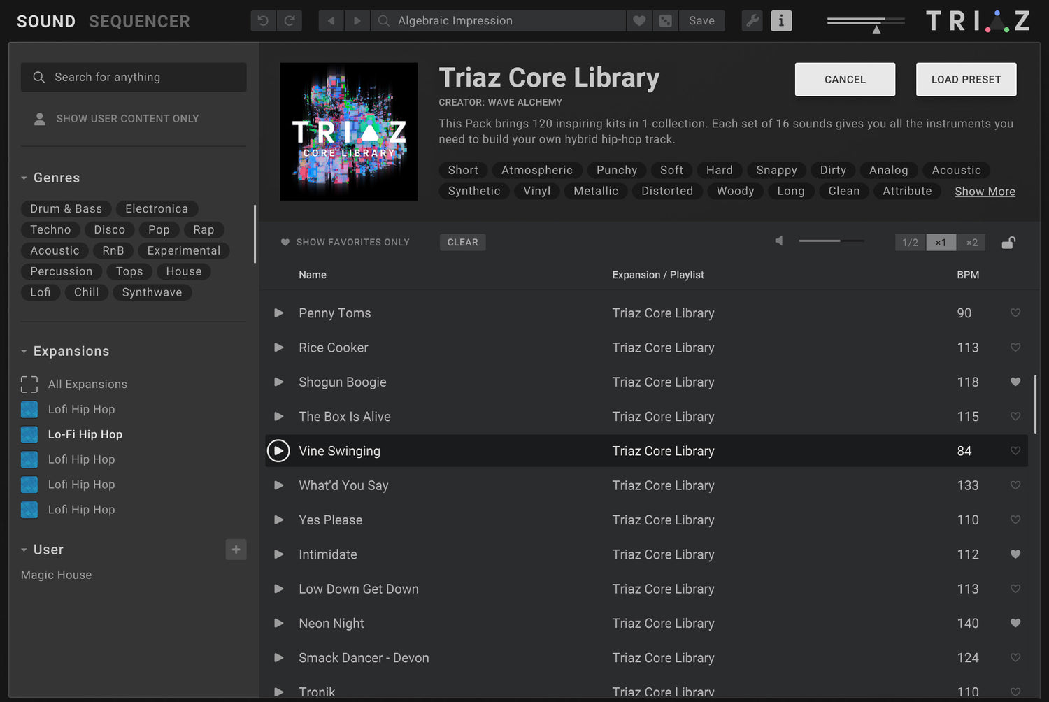 Avec 15 000 batteries méticuleusement conçues et plus de 700 presets prêts à la production, Triaz est une mine d'or sonore pour n'importe quel genre. Explorez des batteries créées à partir de :