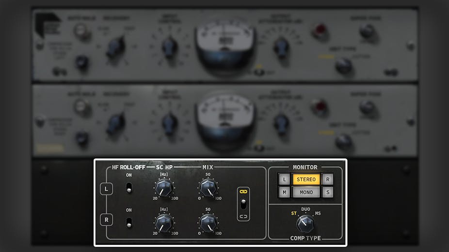 Pour des capacités de mixage modernes, des fonctionnalités ont été ajoutées à l'original RS124 : Sculptez votre son avec un traitement mid-side, en plus du stéréo, dual mono et mono. Réduisez les hautes fréquences pour adoucir le son. Appliquez le Sidechain Highpass pour enlever les basses fréquences de votre sidechain de basse/kick. Réglez le mélange parfait avec Dry/Mix.
