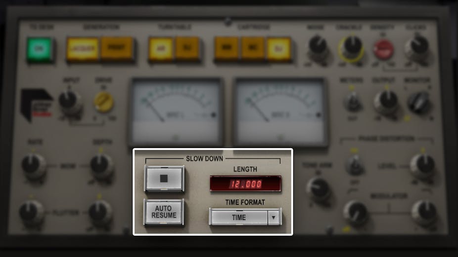 Lorsque l'authenticité est primordiale, ajoutez un peu ou beaucoup des imperfections du vinyle : le grondement de la platine, les crépitements, les clics, le wow, le flutter, et même la distorsion de phase qui se produit lorsque la cellule se déplace de manière plus oblique dans les rainures intérieures.