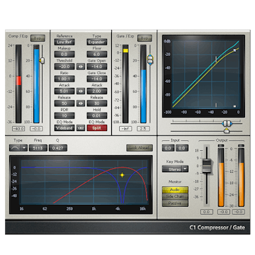 Le classique C1 combine un son dynamique musicalement agréable avec des fonctionnalités riches : Compression, expansion, expansion ascendante, gating, filtrage dynamique, sidechaining, et filtrage de sidechain interne—tout cela dans un seul plugin.