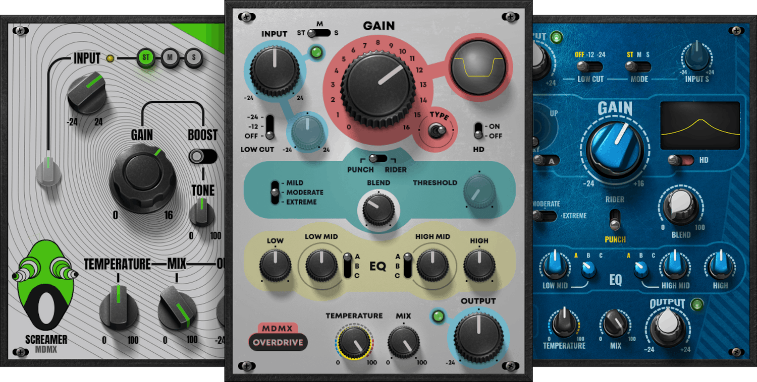 La distorsion n'est pas réservée aux guitaristes. Bien que MDMX ait été inspiré par des pédales de guitare emblématiques, ces versions virtuelles polyvalentes intègrent plus de fonctionnalités, plus d'options, un traitement mid-side, une réponse dynamique et d'autres améliorations qui rendent MDMX universellement applicable à tous les instruments.