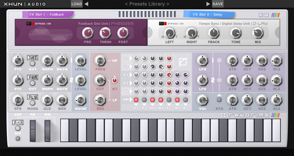 Un filtre analogique expressif, un ensemble de modulateurs accessibles depuis une interface matricielle, deux emplacements multi-effets et un arpéggiateur créatif complètent le tableau : RawPrime vise à être l'un de vos synthétiseurs vintage préférés de tous les temps, d'un passé qui n'a jamais été.