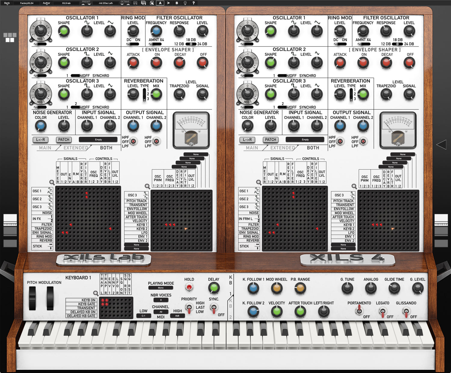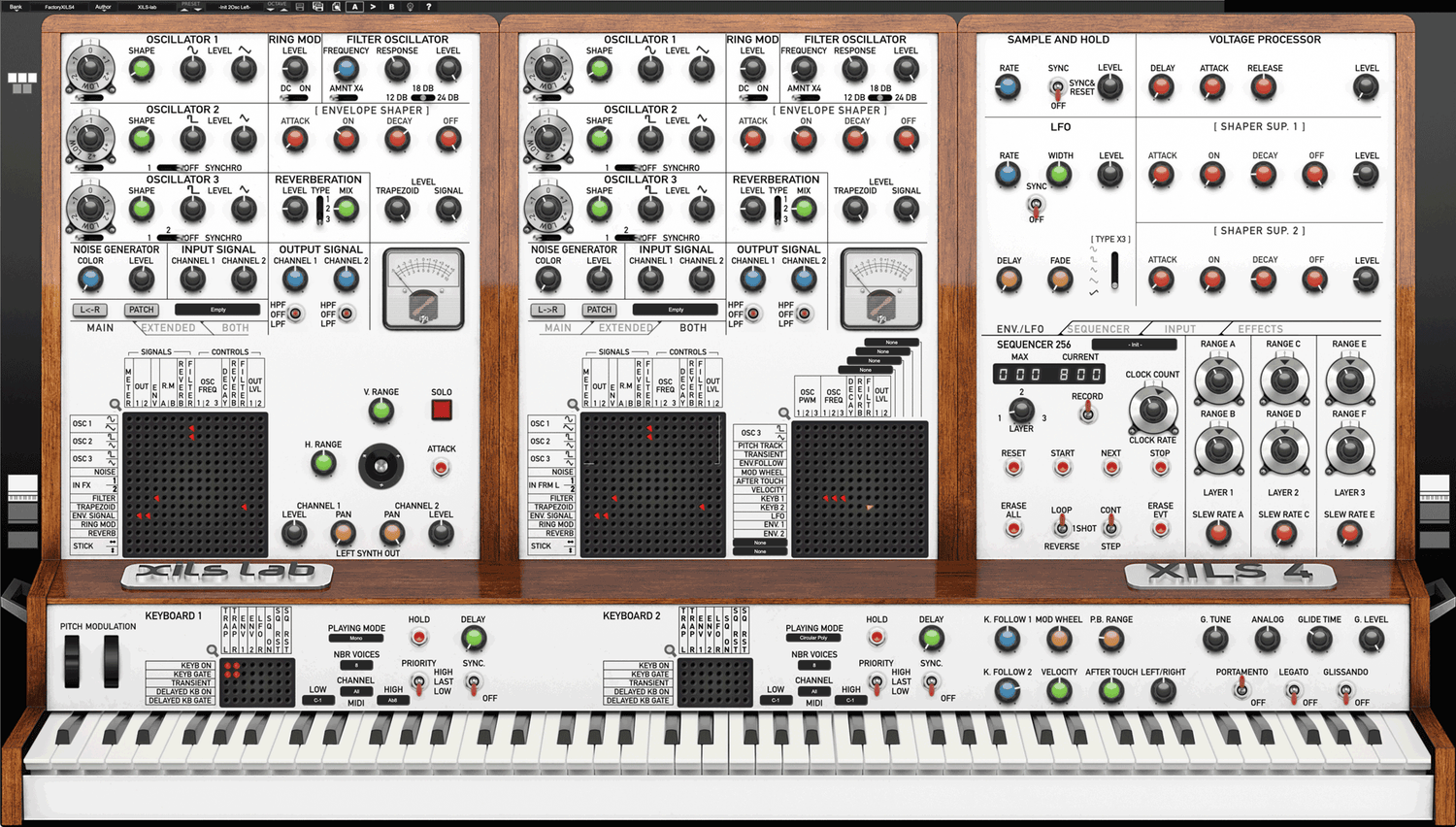 The XILS 4 emulates a prototype that was never released, the EMS VCS4, based on two integrated, interlinked and interacting VCS 3 (Synthi) cores. XILS also coupled them with the famous 256 analog polysequencer.