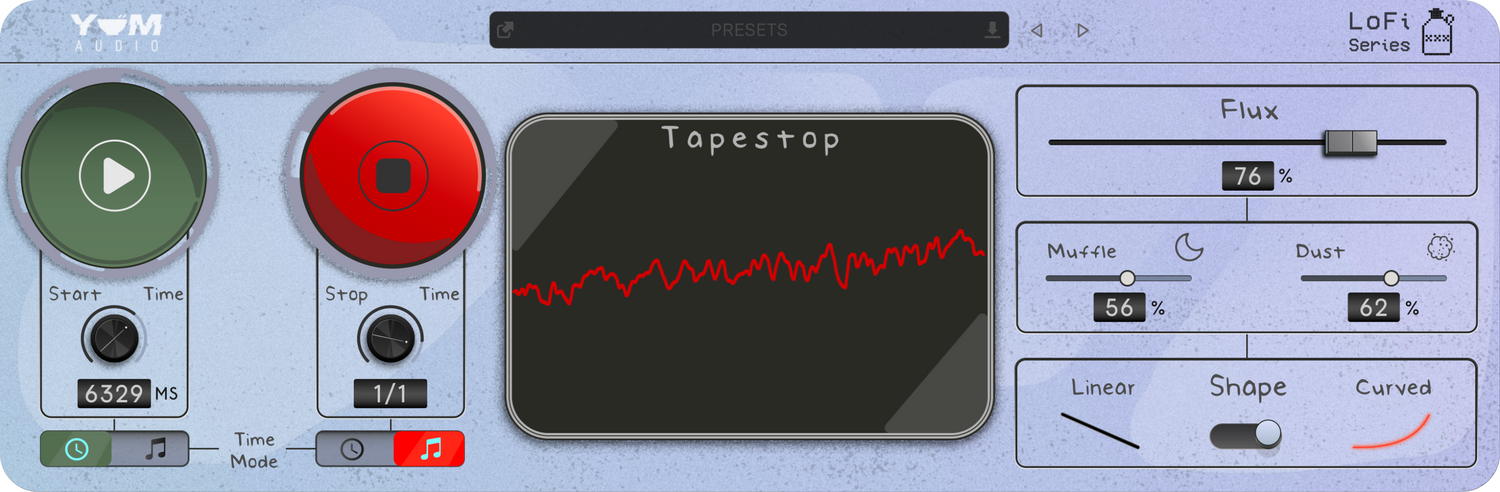 Tapestop utilise des circuits de bande virtuelle pour reproduire le comportement de hauteur et les instabilités qu'un lecteur de bande analogique produit lors du démarrage ou de l'arrêt. Avec les effets Flux, Noise et Muffle, ainsi que des temps de démarrage et d'arrêt entièrement personnalisables, vous avez un contrôle total - que ce soit précis ou lâche et donnez vie à votre son comme vous le souhaitez.