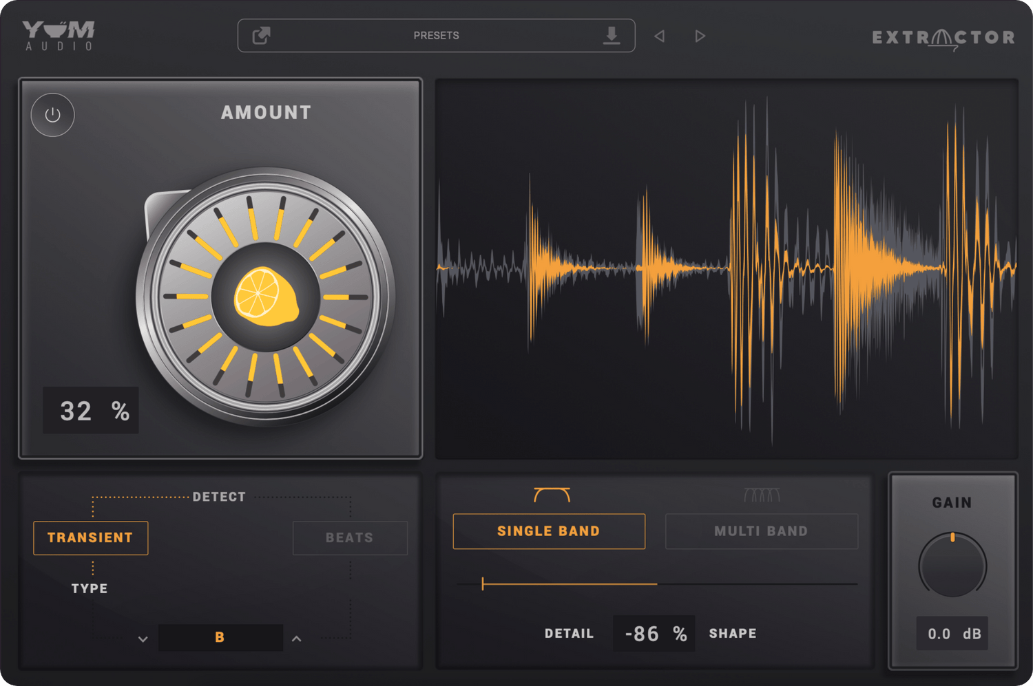 - Transient mode to extract individual hits or even denoise loops